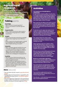 As a social scientist in our conservation agriculture project, I can identify the factors that need to be measured and find the right tools for the job. This often requires a balance between what is scientifically rigorous and what is practically feasible for the community context.