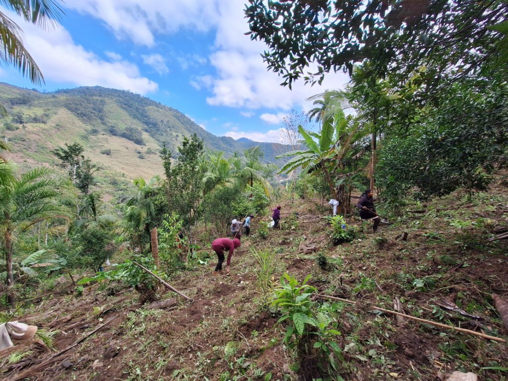 Smallholder women farmers prepare their land for farming in Vale do Ribeira, Brazil.