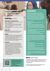 “Translational research is defined as the ability to move scientific discoveries from the lab into the clinic for testing to develop real life applications,” says Katherine. This is often known as the ‘bench-to-bedside-to-bench approach’, where researchers make discoveries in the lab, then see if these apply in human testing, and then take the results of clinical trials back to the lab to build on them further.