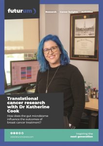 “Every day is different from the next!” says Katherine, whose tasks include collecting faecal and blood samples from the clinic then analysing them in the lab, meeting with students and collaborators to discuss research projects, and presenting scientific data at seminars. These different responsibilities enable Katherine to make advances in science, while improving the treatment outcomes for patients with breast cancer.