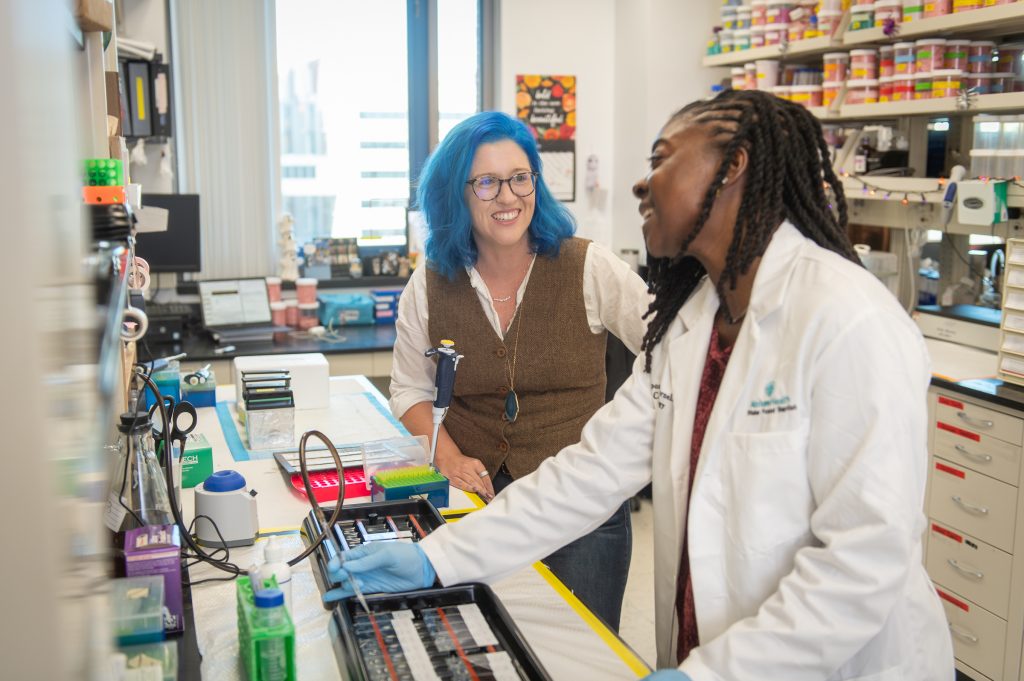 In another trial, Katherine is researching triple-negative breast cancer (TNBC), a type of breast cancer that is more common in young and minority women. It requires a different type of treatment because the cancer cells lack hormone receptors, so patients are treated with a combination of chemotherapy (drugs that kill cancer cells) and immunotherapy.