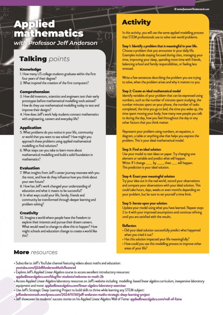 - Talking points based on Bloom’s Taxonomy, helping students to consolidate their learning, think deeply about related issues and evaluate the ‘bigger picture’